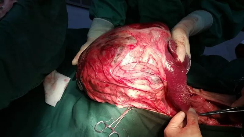 美美患有脾脏肿瘤和子宫蓄脓。两场手术一起做,让手术的风险和难度陡然增加。手术历时三个半小时。我院医疗团队克服了手术中的种种困难,终于完成手术。切下肿瘤重达6.1公斤。这也创下了我院成立19年来手术切除的最大脾脏肿瘤记录。