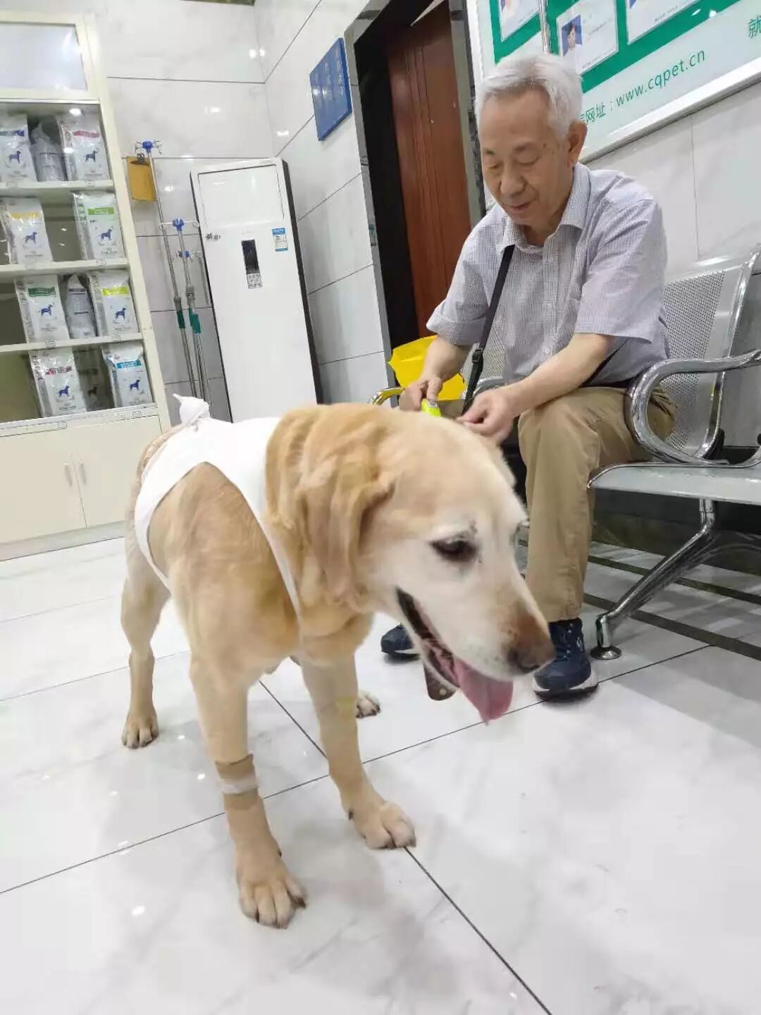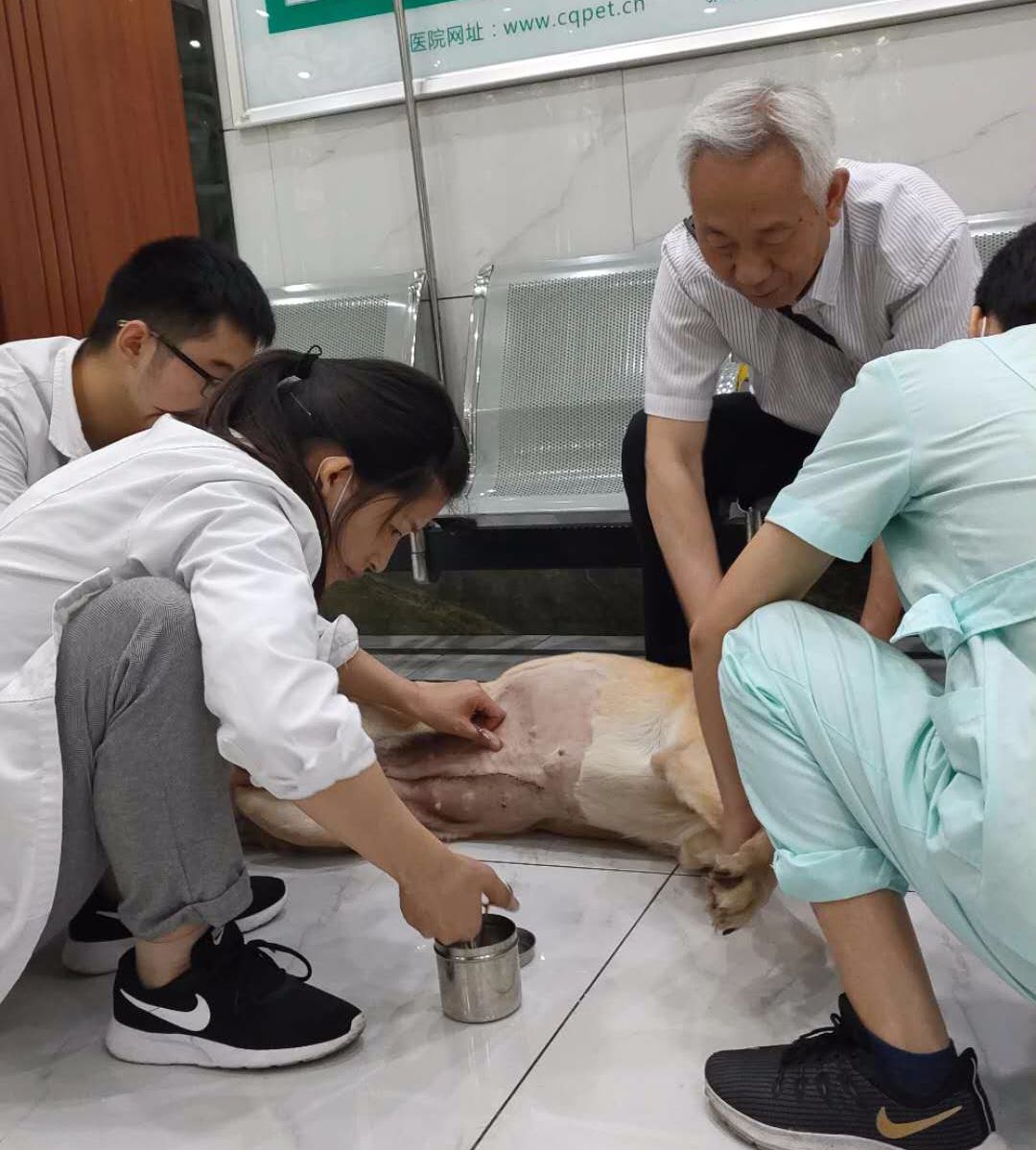 老人家是属于那种非常明白事理的人,文质彬彬对人非常客气。我们告诉他美美的病情非常危重,必须尽快手术。美美年龄已经10岁了,属于老年犬,手术难度巨大,风险非常高。老人家完全选择了相信我们医生的专业意见,并愿意和我们一起努力,给美美一个重生的机会。