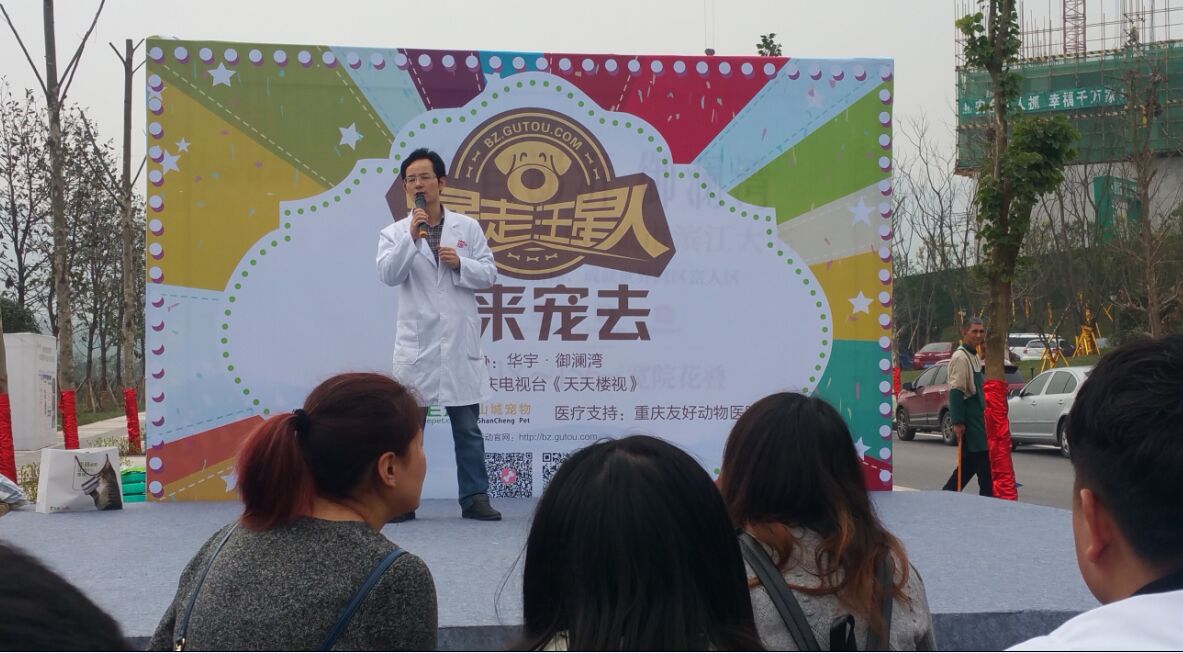 2016年3月13日 重庆电视台在渝北华宇御澜湾主办的《宠来宠去》狗狗运动会,我院受邀作为唯一的医疗支持单位参加该活动。全程为狗狗们的健康护航,并在现场为广大的宠友答疑解惑,回答了大家对狗狗常见病的常识和大家理解上的误区。特别是春天到了,是传染病的多发期,狗狗主人更要多注意宝贝的健康,及时注射疫苗并多观察宝贝的精神状况,饮食多少等等。按时注射疫苗是预防各类传染病的最根本保证。对于幼龄或老年宠物,由于自身免疫功能较差,更应注意防护.